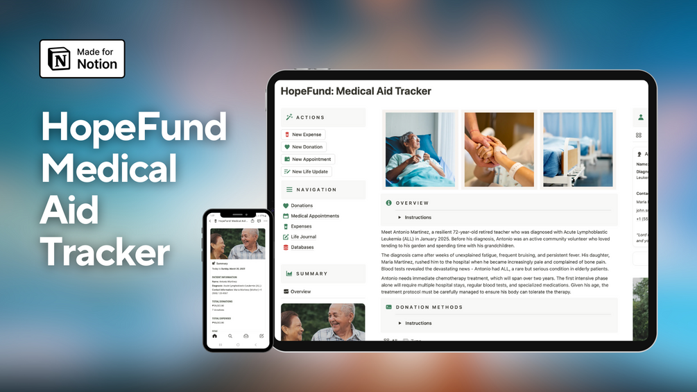Perfect for families, caregivers, and medical support teams managing fundraising campaigns and patient care documentation.