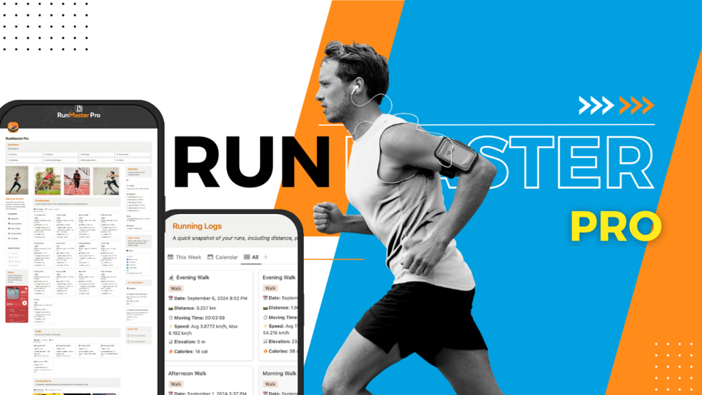 Elevate your running journey with RunMaster Pro! This powerful template combines organization and motivation, turning your runs into a structured and engaging experience. Transform your running routine with dynamic tracking and seamless integrations.
