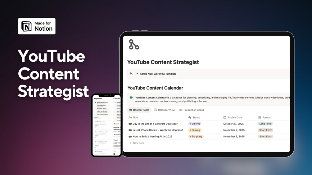 YouTube Content Strategist | Notion + n8n Workflow